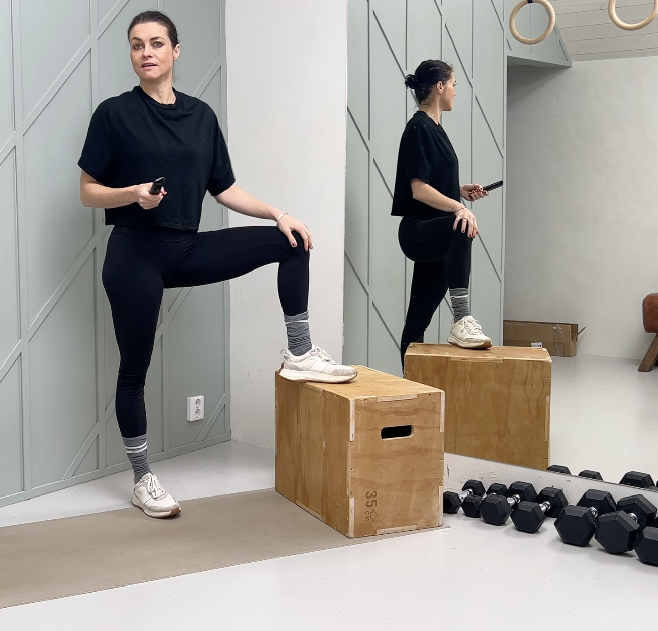 10 minutes of step-ups, dips, squats and press-ups and then a little added core section. All you need is a chair/box/sofa.