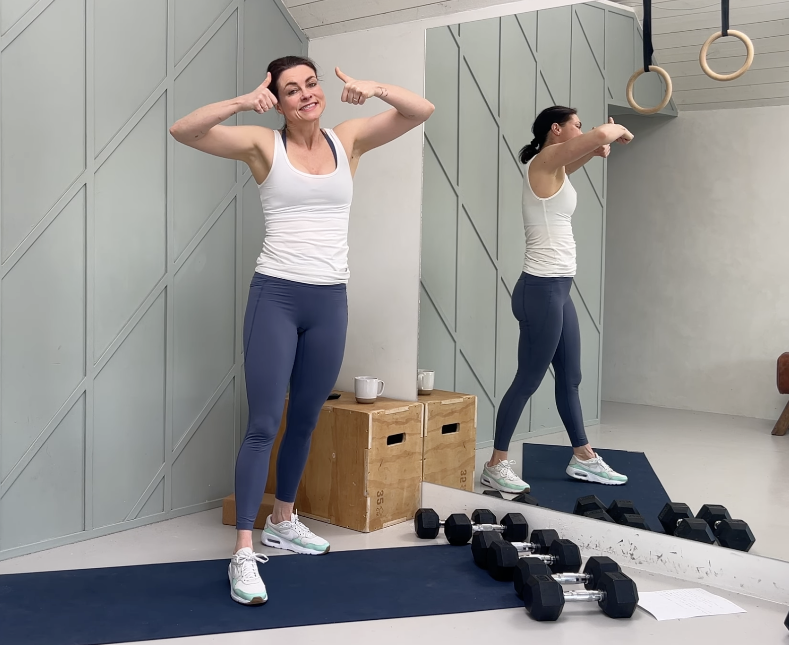 A challenging 30 minute full body workout. Light dumbbells needed. This workout is a ladder format. Three rounds of the exercises- first round is the longest, second round is shorter and the last round even shorter.